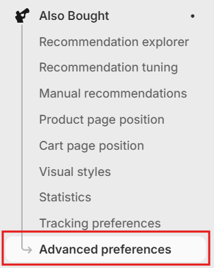 Also Bought widget translations can be created directly from our preferences pages. To do so, go to the Advanced preferences section: