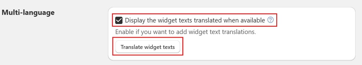 Enable the Display the widget texts translated when available option, Save the changes, and click on the Translate widget texts button: