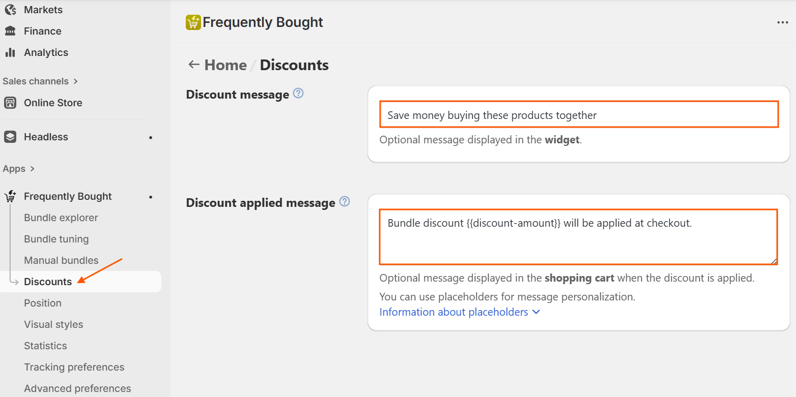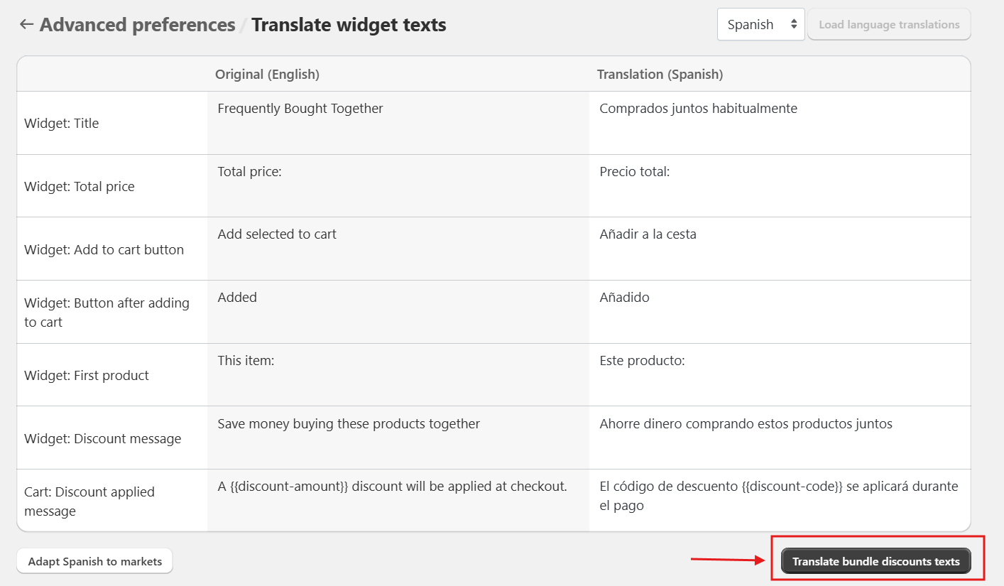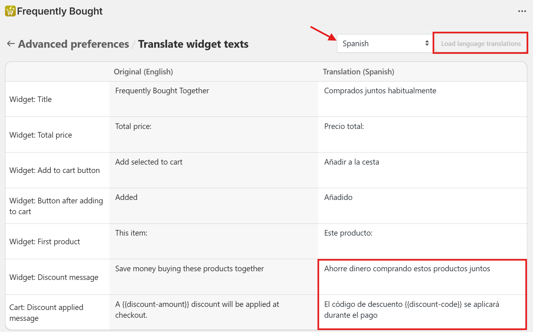 If you have configured discounts with Frequently Bought Together, it is also possible to display the discount messages translated. For more information on what type of discounts does Frequently Bought Together support, please visit this article.