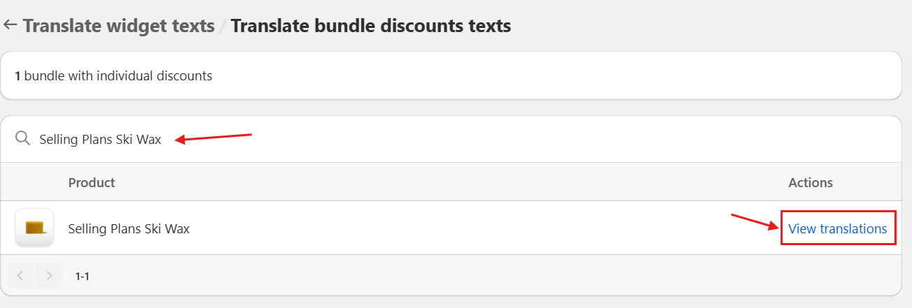 Look for the product with a manual bundle and an individual discount to translate, and click on 'View translations':