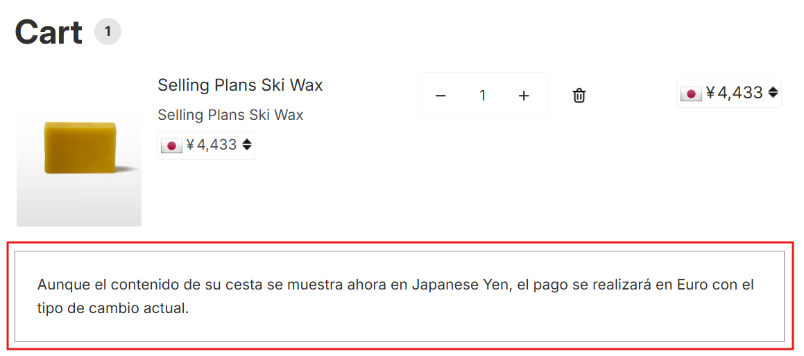 Once the import process is complete, the translated text will be displayed on the cart page: