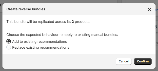 Note that you will need to decide if possible existing bundles of recommended products should be overwritten: