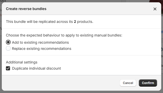 In case a discount has been specifically created for the bundle, you will also need to decide if the discount should be replicated in the reverse bundles: